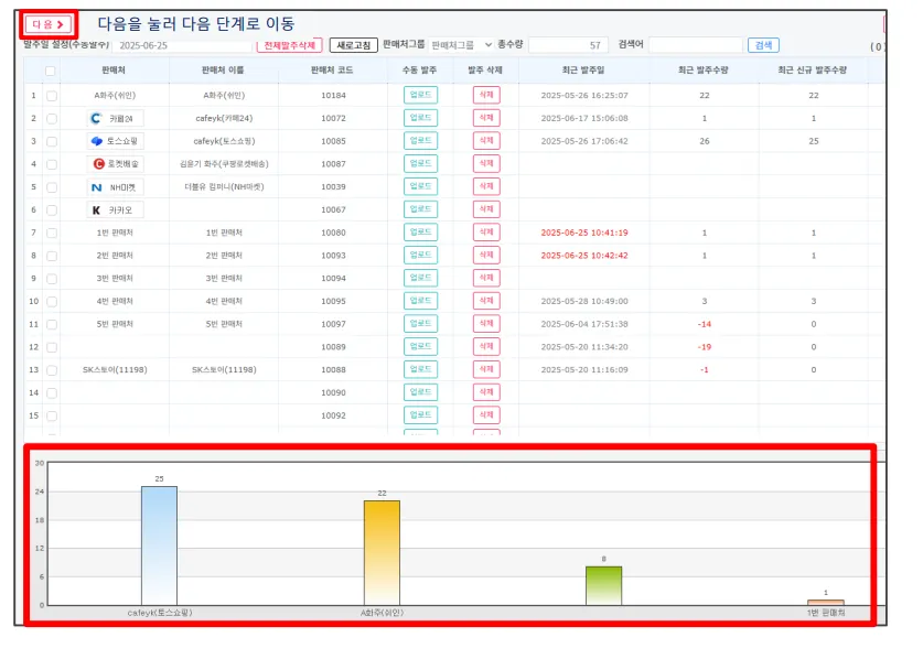 업로드해주시면 메뉴 하단 그래프로 수집한 주문 수량 확인 가능합니다.